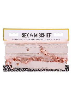 Sex & Mischief Peaches ‘n CreaMe Fur Collar & Leash - Ivory/Rose Gold
