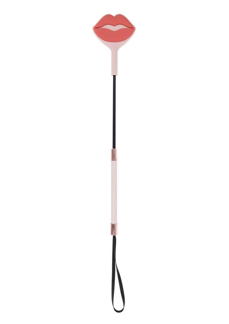 Seal the deal with a kiss they won’t forget. The Peaches ‘N CreaMe Kiss Crop features a soft, 100% silicone tip with a raised lip design that leaves a juicy kiss imprint with every well-aimed swat. The flexible yet firm tip delivers a sharp, satisfying sting that lingers on the skin and even longer in their memory. Adorned with gleaming rose gold accents and wrapped in peachy faux leather, the handle feels just as good in your grip as it looks. A matching wrist loop makes storage simple and impromptu play irresistible. With its flirty design and striking bite, this crop leaves a sensual mark that says, loud and clear: you were here.