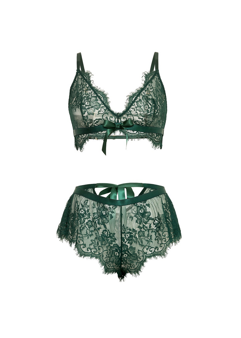 Flirty meets playful in the Cami See-Through Bra Set. This sheer two-piece lingerie set features a soft cup lace bra with a sweet bow detail, paired with a cheeky tap shortie for a look that’s equal parts delicate and daring. Lightweight and unlined for that barely-there feel, this sheer bra and panty set is perfect for lounging, layering, or stealing the spotlight. Finished with adjustable straps for a personalized fit, it’s a dreamy addition to any lingerie drawer.