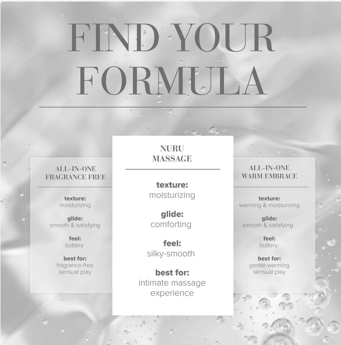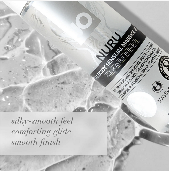 JO Nuru Massage Gel is perfect for those who love a wet, slippery massage. Nuru is an erotic massage practice using the entire naked body as a massage tool to relax and arouse. Nuru means "slippery" in Japanese, so apply it to already wet skin for a slick, sensual glide that allows for just the right slide and grind along your bodies. Perfect for those who love getting a little messy during pleasure, with an easy clean up thanks to its water-based formula!